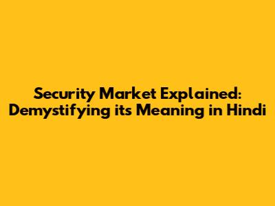 Hey everyone! Ever wondered about the security market and what it means, especially if you're more comfortable with Hindi? Well, you're in the right place! We're going to break down the concept of the security market in a super easy-to-understand way, covering its importance, how it works, and why it matters to you. Think of it as your friendly guide to understanding the financial world, tailored just for you. Get ready to dive in, and let's get started!