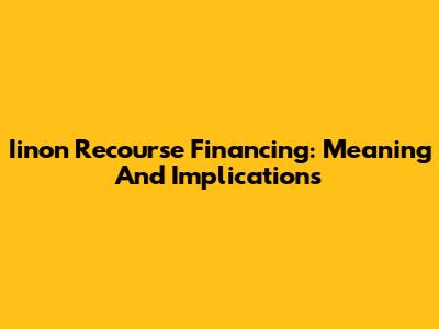 Iinon Recourse Financing: Meaning And Implications