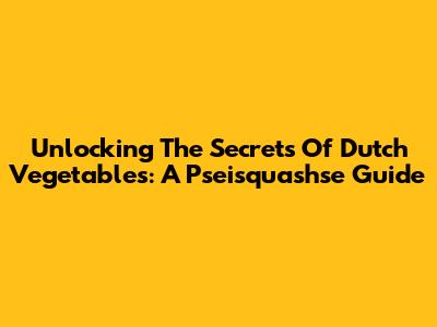 Unlocking The Secrets Of Dutch Vegetables: A Pseisquashse Guide