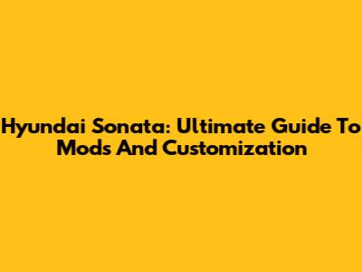 Hyundai Sonata: Ultimate Guide To Mods And Customization