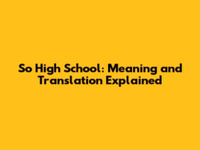 Decoding "So High School": More Than Just a Building