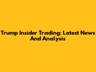 Trump Insider Trading: Latest News And Analysis