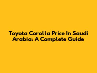 Toyota Corolla Price In Saudi Arabia: A Complete Guide