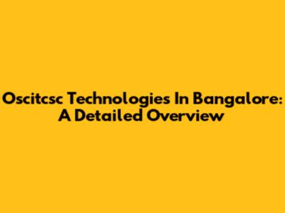 Oscitcsc Technologies In Bangalore: A Detailed Overview