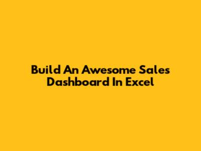 Build An Awesome Sales Dashboard In Excel
