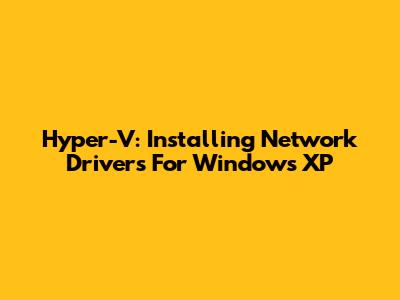 Hyper-V: Installing Network Drivers For Windows XP