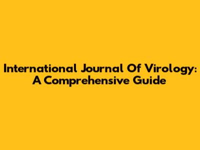 International Journal Of Virology: A Comprehensive Guide