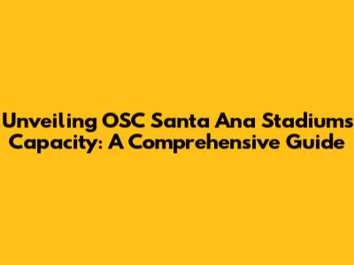 Unveiling OSC Santa Ana Stadium's Capacity: A Comprehensive Guide