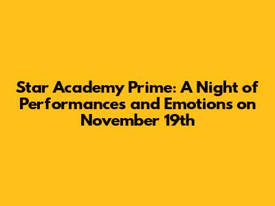 Hey everyone! Let's dive into the amazing world of the Star Academy Prime from November 19th. This episode, packed with performances, drama, and heartfelt moments, had us all glued to our screens. If you missed it, or just want a recap, you're in the right place. We'll break down the highlights, the stand-out performances, and all the juicy details you might have missed. So, grab your snacks, settle in, and let's get started. Seriously, the students were on fire this week. The energy was electric, the talent undeniable, and the emotion raw. This night had everything a Star Academy fan could ask for! The show kicked off with an incredible group number, showcasing the students' hard work and dedication. From there, the individual performances took center stage, each student bringing their unique flair and artistry to the stage. There were tears, cheers, and everything in between. It was an evening that truly celebrated the power of music and the journey of these aspiring artists. The atmosphere in the studio was incredible. You could feel the support and camaraderie among the students, the excitement of the audience, and the passion of the mentors. This prime wasn't just about the performances; it was about the growth and development of the students. It was about seeing them overcome challenges, push their boundaries, and shine on the big stage. Get ready to relive all the best moments, because this recap is going to be epic.