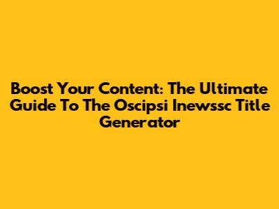 Boost Your Content: The Ultimate Guide To The Oscipsi Inewssc Title Generator