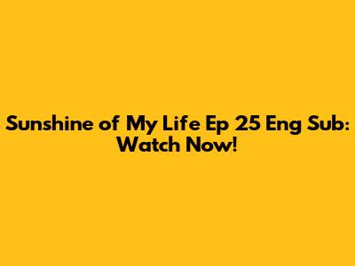Hey guys! Are you ready to dive into another captivating episode of "Sunshine of My Life"? Episode 25 is finally here with English subtitles, and trust me, you don't want to miss it! Let’s get right into what makes this episode so special and where you can watch it.