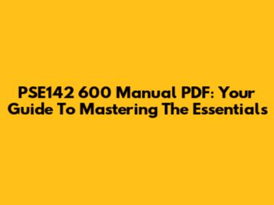 PSE142 600 Manual PDF: Your Guide To Mastering The Essentials