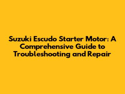 Understanding the Suzuki Escudo Starter Motor: The Engine's First Command