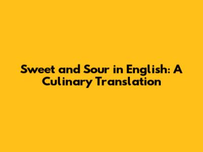 Sweet and Sour in Culinary Terms