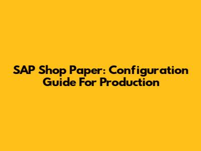 SAP Shop Paper: Configuration Guide For Production