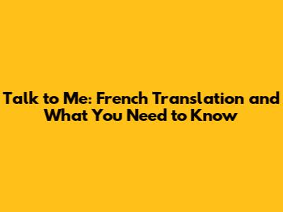 Decoding the Talk to Me French Translation