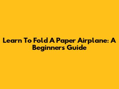 Learn To Fold A Paper Airplane: A Beginner's Guide