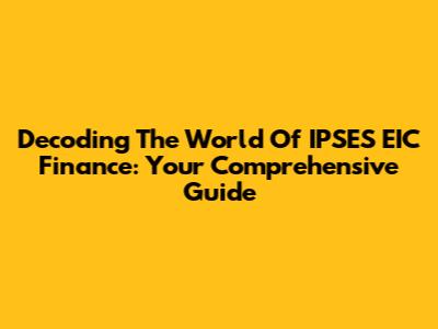 Decoding The World Of IPSES EIC Finance: Your Comprehensive Guide