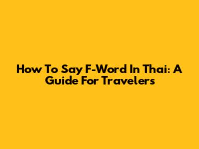 How To Say 'F-Word' In Thai: A Guide For Travelers