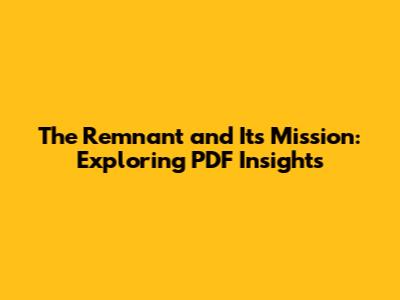 The concept of a remnant appears across different cultures and religions, often referring to a small group of people who remain faithful and are tasked with preserving or restoring essential values and principles. Whether in a religious, social, or historical context, the remnant plays a vital role in maintaining continuity and driving change. Examining PDF documents related to this topic can offer diverse perspectives and in-depth analyses that shed light on the remnant’s purpose and actions. The remnant and its mission, as documented in various PDFs, often highlights themes of resilience, dedication, and the preservation of cultural or spiritual heritage.