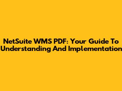 NetSuite WMS PDF: Your Guide To Understanding And Implementation