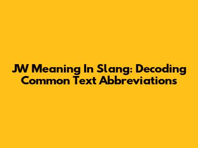 JW Meaning In Slang: Decoding Common Text Abbreviations