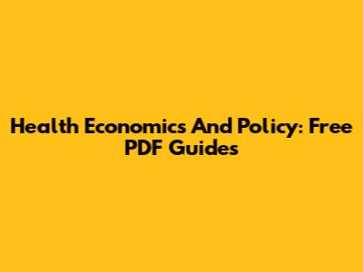 Health Economics And Policy: Free PDF Guides