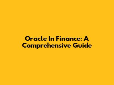 Oracle In Finance: A Comprehensive Guide