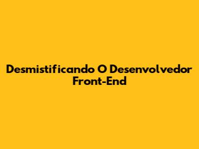 Desmistificando O Desenvolvedor Front-End