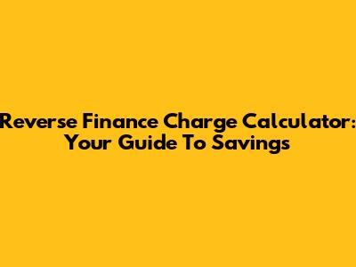 Reverse Finance Charge Calculator: Your Guide To Savings