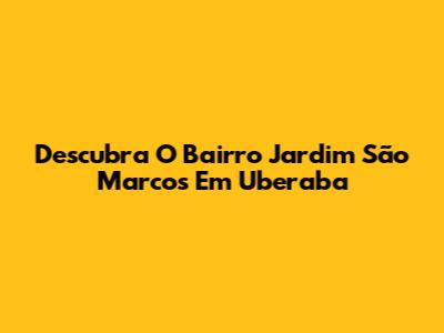Descubra O Bairro Jardim São Marcos Em Uberaba