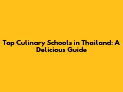 Top Culinary Schools in Thailand