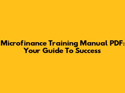 Microfinance Training Manual PDF: Your Guide To Success