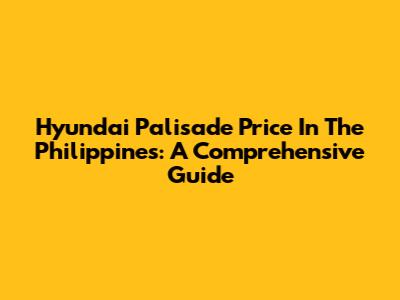 Hyundai Palisade Price In The Philippines: A Comprehensive Guide