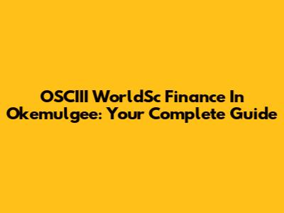 OSCIII WorldSc Finance In Okemulgee: Your Complete Guide
