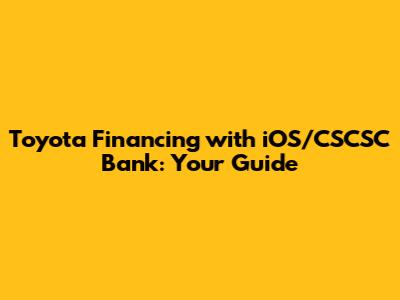 Hey guys! So, you're looking to snag a sweet new Toyota and wondering about financing options, right? Well, if you're an iOS user and potentially looking at the CSSC Bank, you're in the right place! We're diving deep into the world of Toyota financing, specifically focusing on how it works with iOS devices and exploring the potential of utilizing CSSC Bank. This comprehensive guide will break down everything you need to know, from the initial application process to understanding interest rates and payment plans. Getting a new car can be a significant step, and understanding the financing side is crucial. Let's make sure you're well-equipped to make informed decisions and drive off in that shiny new Toyota feeling confident and financially savvy. Let's explore the ins and outs of securing the best possible financing deal. This guide is designed to empower you with the knowledge needed to navigate the Toyota financing landscape, making the entire process smoother and less stressful. We'll be touching on how to leverage the technology you already use, such as your iOS device, to streamline the application process and manage your finances effectively. So buckle up, because we're about to embark on a journey through the world of Toyota financing, iOS, and CSSC Bank! Getting the right financing can save you a ton of money in the long run, and we're here to help you do just that.