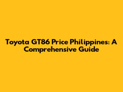 Toyota GT86 Price Philippines: Factors to Consider
