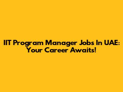 IIT Program Manager Jobs In UAE: Your Career Awaits!