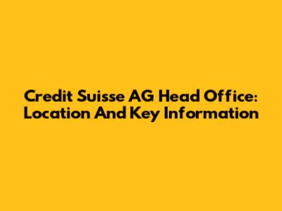Credit Suisse AG Head Office: Location And Key Information