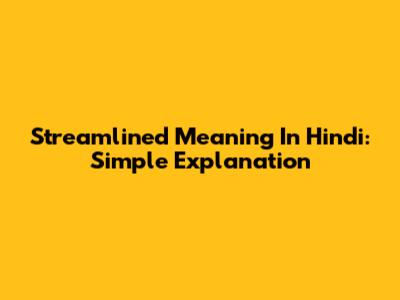 Streamlined Meaning In Hindi: Simple Explanation