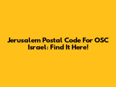 Jerusalem Postal Code For OSC Israel: Find It Here!