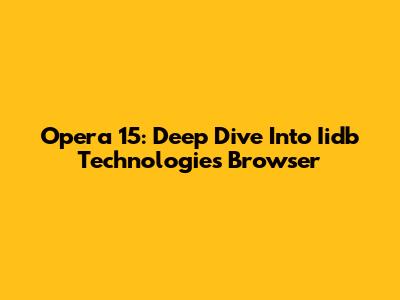 Opera 15: Deep Dive Into Iidb Technologies' Browser