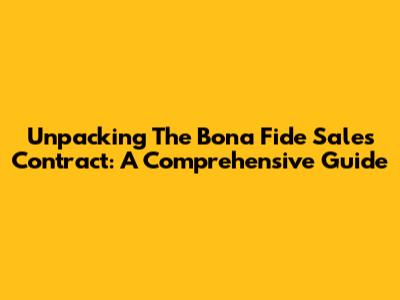 Unpacking The Bona Fide Sales Contract: A Comprehensive Guide