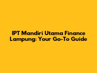 IPT Mandiri Utama Finance Lampung: Your Go-To Guide