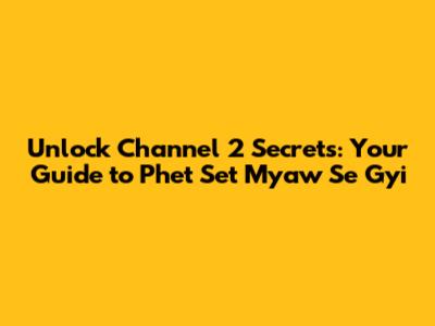 Navigating Phet Set Myaw Se Gyi Channel 2: A Step-by-Step Guide