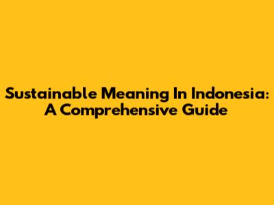 Sustainable Meaning In Indonesia: A Comprehensive Guide