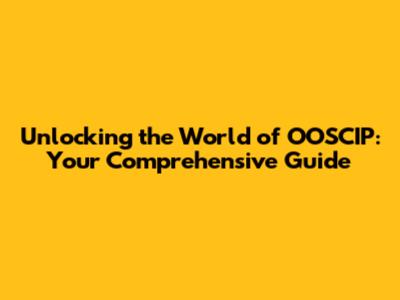 What is OOSCIP, Anyway?