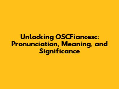 Why Understanding OSCFiancesc Matters: Its Significance