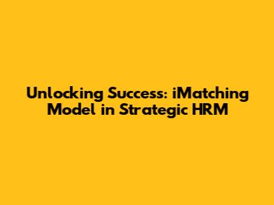 In today's dynamic business environment, strategic human resource management (SHRM) is more critical than ever. Companies are constantly seeking ways to align their human capital with their overall business strategies to achieve a competitive advantage. One particularly insightful approach is the iMatching Model, which provides a structured framework for ensuring that the right people are in the right roles, contributing effectively to the organization's goals. Guys, let's dive deep into what the iMatching Model is all about and how you can leverage it to transform your HR practices.