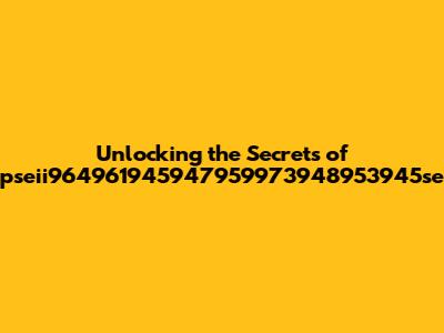 One key aspect to consider is the character set used in pseii964961945947959973948953945se. Is it limited to alphanumeric characters (A-Z, a-z, 0-9), or does it include special symbols and punctuation marks? The choice of character set can significantly impact the size and complexity of the identifier. A larger character set allows for a greater number of possible combinations, increasing the uniqueness and security of the string. However, it also makes it more challenging to read and interpret. Therefore, the designers of pseii964961945947959973948953945se must strike a balance between security and usability.
